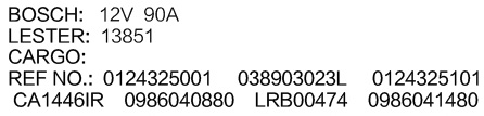 發(fā)電機產(chǎn)品類別: 博世發(fā)電機系列