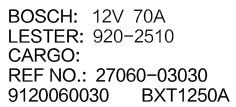 發(fā)電機首頁 - 博世發(fā)電機系列 - WB1211 920-2510發(fā)電機