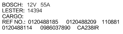 發(fā)電機首頁 - 博世發(fā)電機系列 - WB1219/WB1219A/WB1253C 14394發(fā)電機