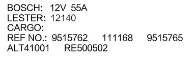 發(fā)電機首頁 - 博世發(fā)電機系列 - WB1233 12140發(fā)電機