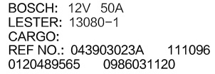 發(fā)電機首頁 - 博世發(fā)電機系列 - WB1238A 13080-1發(fā)電機