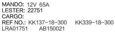 發(fā)電機產(chǎn)品型號: WB9419 22751
