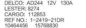 發(fā)電機產(chǎn)品型號: WB2351 8274